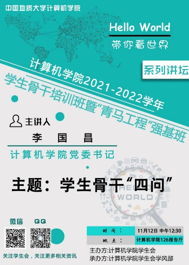 弘扬正能量,展现新风尚。构建“三位一体”网络思政融媒体,以思想引领为核心,多维度、多层级输出实用信息,全方位全覆盖服务计科师生。在2021-2022年度五四评优考核中,世界杯体育官方网站微信公众号“CSer在地大”荣获“十佳团属新媒体平台”。