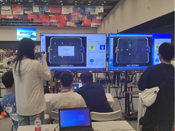 朱子恒同学回忆道:当时的一个改进点可以更加有效地减少我方犯规。经过仔细审查代码,逻辑没有问题,然后顺利跑通代码,效果很不错。但我们还没来得及高兴,换另一个代码作为对手进行测试,结果就展现出了很呆的局面,并没有预期的结果那样好。再比如,自己的改进策略在对比队伍上表现很棒,同学的改进策略在对比队伍上表现也很棒,但是两种策略结合到一起后,出现了策略退化的情况……备赛期间,类似于这样的经历还有很多,但同学们相互鼓励、相互帮助,最终克服了重重困难,成功地完成了比赛。