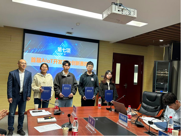 陈虹雨经理介绍了小米实训箱平台。周茂华总经理向世界杯四位同学颁发了2022年AloT开发平台创新赛获奖证书。