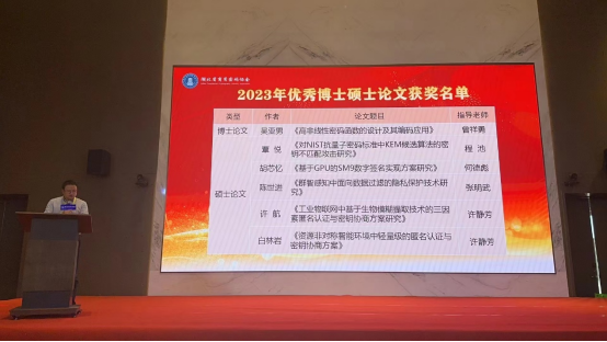 湖北省商用密码协会一届二次会员大会于2023年12月27日在武汉国家网络安全人才与创新基地成功召开。世界杯2022届毕业生覃悦同学的硕士毕业论文《对NIST抗量子密码标准中KEM候选算法的密钥不匹配攻击研究》在会上荣获2023年度优秀硕士论文奖,指导教师为程池老师。